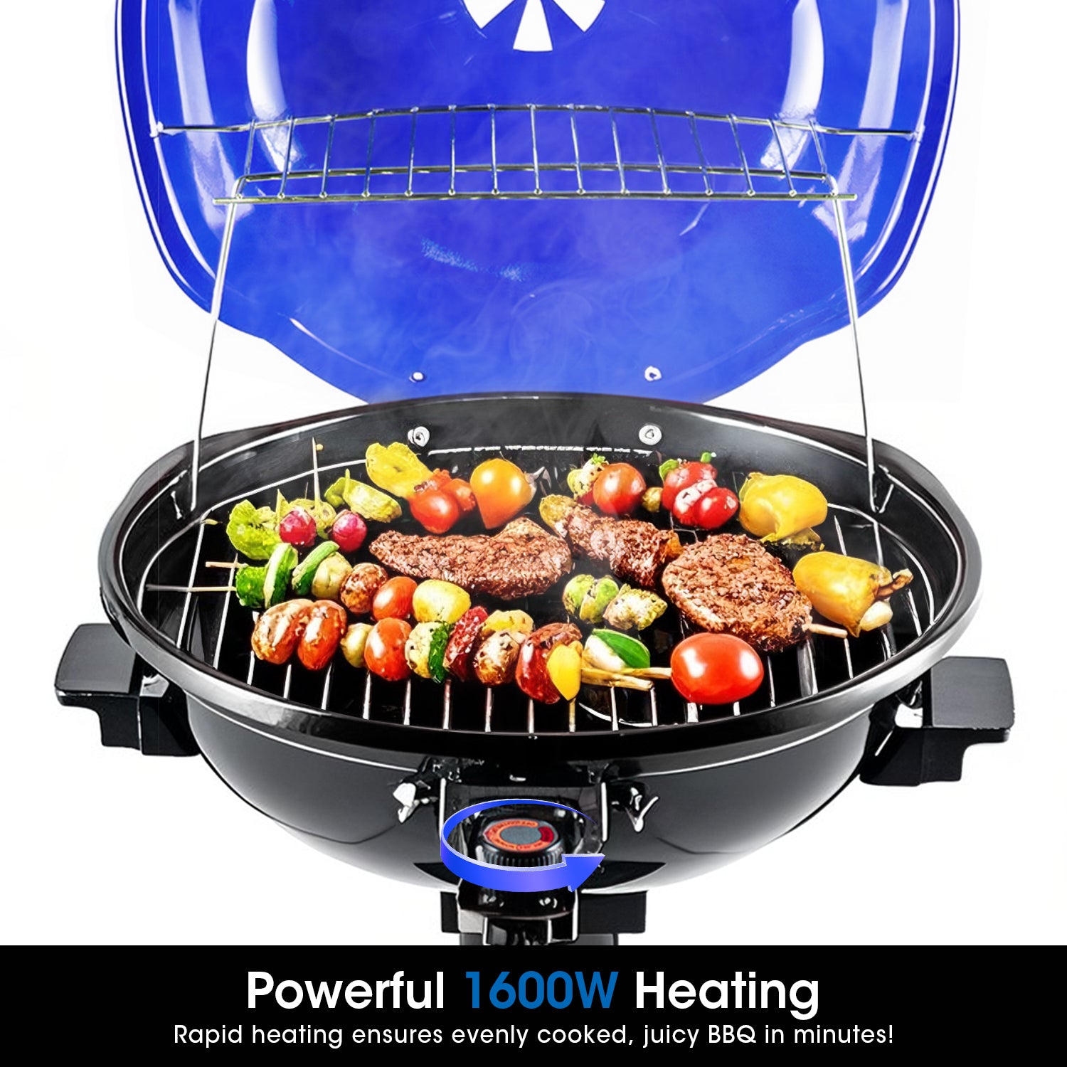 Techwood Electric BBQ Grill 1600W (Stand Black BBQ Grills),15-Serving Indoor/Outdoor Electric Grill for Indoor & Outdoor Use, Double Layer Design, Portable Removable Stand Grill,(Blue)